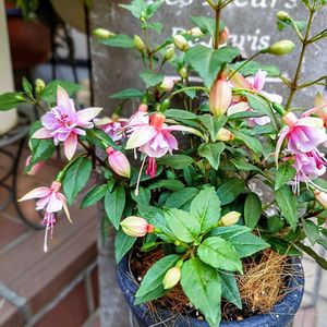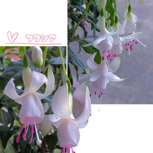 ᐝ*´ᵕ`)ノこんにちわ〜👋☔ かわいい〜𓍯*̩̩͙⸝⋆ ♡フクシアさん♡ 〈ジョリーズ〉 1⃣2⃣3⃣4⃣ ❥鑑賞期間が長く 釣り鐘状で🔔 下向きに咲いてる姿が ❥とってもエレガントで ❥貴婦人の👸🏻 イヤリングとも 呼ばれてる ステキなお花🤍🩷Շ”ਭ·͜·ೢ つれてきました〜🥰 ❀𓂃 𓈒𓏸❀𓂃 𓈒𓏸❀𓂃 𓈒𓏸