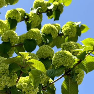 こんにちは(*ˊᵕˋ*)♬.*゚ 青空にオオデマリが喜んでま〜す💚 フクシアも踊っていま〜す💗💕 最高気温23℃最低気温15℃ 晴れ🌞 風薫五月のような陽気…