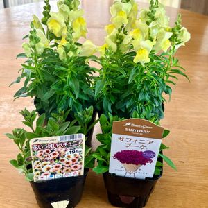 2026.4.7☁️(8℃~16℃) コメリでお迎えしました🐓⸒⸒ サフィニアブーケ(コメリ限定) 花いっぱいペチュニアネクタリン 金魚草×2 丁度品出し最中で店頭に並び始めたばかり❣️苗の状態がとても良かったのでついつい~😆 金魚草は3年目のものが枯れてしまったので更新しました🫶 このご時世税込みで98円の金魚草 コメリはお財布にも優しいです😆😆