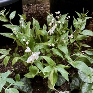 1年前…2024.4.28にベビー苗でお迎えした ヒメウツギ ユキチェリーブロッサム きれいに咲いてくれました~😊 10号鉢、株幅60cm,高さ38cm 花が咲き終わった後で伸びた枝に、翌年の花芽をつける…旧枝咲きシュラブです。昨年5月に剪定した後、枝を切ることが怖くて、伸び放題でわちゃわちゃです。