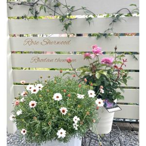 ✽.。.:*・゚ 🌼🍃ローダンセマム✽.。.:*・゚ ①②バラ🌹シャーウッドとクレマチス流星の蕾と記念撮影です♪ 今日、ローダンセマムを花壇に植え付けしようと思います ③クリスマスローズを半日陰に移動したので玄関前を模様替えしました。白い小花は、ヒメウツギで挿し木から10年以上植えっぱなしの鉢植えです😅 🌼🍃✽.。.:*・゚ ✽.。.:*・゚ ✽.。.:*・゚ ✽.。.:
