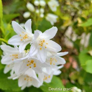 世界遺産・下鴨神社へと続く木漏れ日の美しい糺の森で出逢えた、爽やかな「姫空木(ヒメウツギ)」でおはようございます🌿🕊️⛩️✨ https://tadasunomori.or.jp/ "姫空木"は、日本固有種で古来より日本人に愛されてきた日本原産のアジサイ科の植物🇯🇵 アーチ状に垂れ下がる枝先に、つるつるとした手触りの長卵形の葉がついています🍃🍃 『万葉集』では、ウツギの花を「卯の花」として詠む和歌が24首ほど登場するようですが、以下のような、淡く切ない恋心を詠んだ作品もございました📖💓👘 佐伯山 卯の花持ちし 愛しきが 手をし取りてば 花は散るとも (巻7の1259) 訳) 佐伯の山で 卯の花を持っていた 可愛い子 あの子の手を握る事が できたらなぁ… 美しい花は 散るかもしれないけれど それでも本望だよ ー花言葉は、「秘めた恋」、「夏の訪れ」…他。