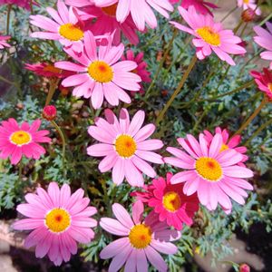 ①ラナンキュラス ラックス アリアドネ 2024.4/15にお迎えして 昨日 パシャリ📱✨ 艷やかな花びらはまだ 元気に咲いてました☺️ ②アルメリア ピンクボール 2024.1/19お迎えして 花の終盤になると ✂️チョッキン 毎年 咲いてくれてる まん丸な 小さな集まりのお花 昨日 花数は増えてきました ③チロリアン デージー ・ロベラ 2026.1/15にお迎えして 花数は モリモリ ピンクの ふさふさ花びら いっぱ〜いに🤭 ④サルビア ミラージュ ローズバイカラー 2023.10/17お迎えして バイカラーなピンク 昨日 咲きかけてました ぷっくりしてて キュン😉💕 花の終盤には ✂️チョッキン 毎年 花数 モリモリ咲いてね🙏🏻 ( ①〜④ は我が家のお花) お出かけ先にて 一部 我が家のお花 🏷️今日のお花 ガーベラ 🏷️おしゃれな土曜日♪ ⑤ガーベラ 何色かを コラージュしてみました🤭