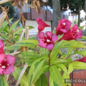 ☆庭のお花達☆ ↑バイカウツギ この時期、又枝先に一輪🤔 普通6月から7月頃に咲く お花なのに異常ですねー 爽やかな白色は、いつもきれい😍 ↓サザンカの蕾がピンク色に 色付き始め、賑やかです〜 開花すると一部ピンク色が 殆ど白色に変化します〜