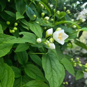 ✨🤍バイカウツギ🤍✨ 秋なのに〜 花友さんのお家でも咲いてるみたい😊 春と間違えたのでしょうか😀