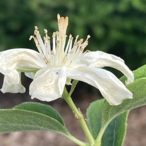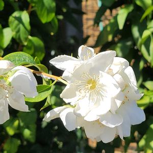 《バイカウツギ》 5月から6月にかけて枝先に梅に似た白い芳香のある花を咲かせる落葉低木です🤭 花びらは5枚で、ユキノシタ科の植物🤭🌼 物に似ているのが特徴🌸はな