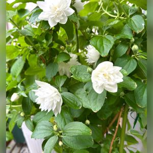 バイカウツギが咲き始めました。 パールズオブパフューム。 八重咲きで香りがする?らしいけど まだ確認していません😆 去年は香りがしたか?記憶に無いで〜す🙄 明日クンクンしてこよぉ〜😅 ぴょ〜んと新芽🌱が伸びて 全体的に めっちゃバランス悪いです😂