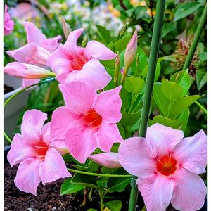 おはよう〜 ございます😊👋☀ マンデビラ ♡ローズ♡ ♥︎ぐんぐん成長しています ♥︎数個の蕾が\パッカーン/ 咲いてきました🩷🧚♀🩷 カワイイ☆〜❤︎ ♥︎まだまだ これからが楽しみ〜 ( ˶ᵔᵕᵔ˶و)و ”ゎ‹ゎ‹♩💕 。.ꕤ‿‿‿‿‿‿‿‿‿‿‿‿ꕤ.。