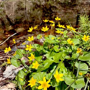 今年も水辺を彩ります❣️ リュウキンカ(立金花) *キンポウゲ科リュウキンカ属 花期は4〜7月 本州〜九州の水辺や湿地に生育する多年草! 水芭蕉の共に咲く事も多い! 花弁に見える部分は萼片で 普通は5枚(6〜7枚ある事も) 高さは15〜50cm 葉は心円形〜腎円形で縁に鋸歯! ③大群生! 和名は 茎が立ち上がり金色の花を咲かせる事から! 4月17日撮影