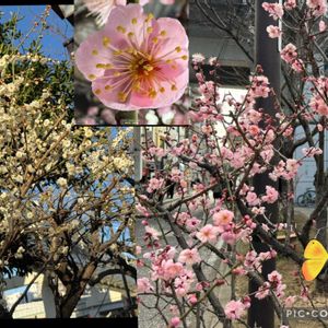 今日のお花の梅です。そばの石川町商店街前の川沿いに紅白で咲いています。家のボケやリュウキンカも咲き始めて春近しです♪