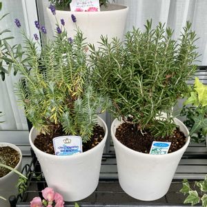 ラベンダーとローズマリー ラベンダーは5号から6号に鉢増し。秋も咲いてくれてる🪻 ローズマリーは同じ鉢に植え替え。 2年経ちました〜形を整えて盆栽的な育て方😊