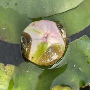 そろそろお目覚め? 睡蓮のお花の蕾を見つけました。