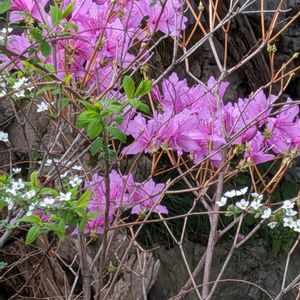 1枚目はミツバツツジが咲き出してます。 2枚目はボケの花 🏷️木曜日は木に咲く花
