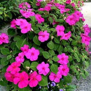 衝撃的なピンク❣️インパチェンスが咲 いていました🩷サンパチェンスかも💦