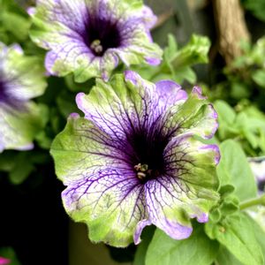 こんにちは➰🤗 今日の天気は曇り時々晴れ🌤️ 最高気温23度 最低気温17度 我が家の小さな花壇より🌸🌼🌺 💚💜ペチュニア💜💚 アマゾナスプラムコカトゥー💚💜 今日の沖縄は…雲から日もさして 晴れています🌤️でも…風が強いですね🌪️ 門扉前花壇のペチュニアが咲いて来ました💕🪴 このグリーンと深い紫のコントラスト💚💜花色のアマゾナスプラムコカトゥーに一目惚れしてお迎えしました💕💜💚 グリーンと紫色のコントラストがなんて美しいんでしよう😍ずっと見ていられますね〰️🥰 ただのバイカラーではなく…花びらの縁が少しライムグリーンっぽく フリル状になっていて…なんとも言えないシックな雰囲気です💕💚💜 これからの成長がとっても楽しみです😍 科属名 ナス科 ペチュニア属 開花期 春から秋(3月〜11月頃) 🌸•*¨*•.¸¸☆•*🌿🌸🌿•*¨*•.¸¸☆*・🌸