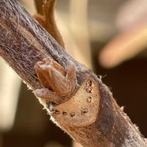 こんにちは╰(*´︶`*)╯♡ 正解を今日12/3⬇️に書きました♪(๑ᴖ◡ᴖ๑)♪ 昨日から寒さが強まり、 庭のいろんな葉っぱ🍂🍁🌿が 散っています。 今日もまだ防災無線で🐻注意喚起しています😰 ⛰️には入れません🐻ので、 身近な通勤道路の林道(僻地なので)や地元の仲の良い花友さんと一緒に散策しています🎶♫ 「クイズ冬芽葉痕」少しですが、宜しくお願いします🙇♀️ @かしさんの、冬の楽しみ、と言ってらっしゃる、 冬芽葉痕のクイズに乗っかって 拙いpicを載せさせていただきました。 新米です。お手柔らかに🙇♀️ ʕ•̫͡•ʕ•̫͡•ʔ•̫͡•ʔ•̫͡•ʕ•̫͡•ʔ•̫͡•ʕ•̫͡•ʕ•̫͡•ʔ•̫͡•ʔ•̫͡•ʕ•̫͡ さて、この葉痕冬芽は? 身近にあるのですぐわかると思います。優しすぎ😅🙇♀️ ヒント💡 ○○○○¨○○¨○○ は花が咲き終わってから剪定をしないと、次の年の花芽が作れません。 花芽は前年の夏にできますので樹形を整える剪定は、花後のなるべく早い時期に行いましょう。これは「旧枝咲き」と呼ばれるタイプの花の特徴です。 とあります。 可愛い王冠が乗っかってます。 ③④は葉が落ちる前の紅葉した葉で柏の葉に似ています♪ 落葉低木。原産地は北米東南部。 花の色は白。あるいは最近はピンクや紅色など様々ある様です。 垂れ下がって小さなお花を咲かせます🤍 参加していただきたいです。 明日⬇️にお花の名前を載せます🙇♀️ 12/3昨日の冬芽葉痕の正解: 「カシワバアジサイ」❗️でした🙇♀️ ◦@すずはなさん、@画夢さん @らなさん、@こらぼっさん、 @かしさん、 ご協力ありがとうございました😊😭💕👏
