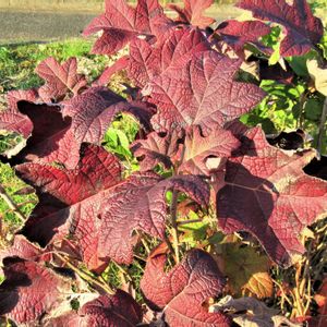 柏葉紫陽花の葉っぱが真っ赤っ赤
