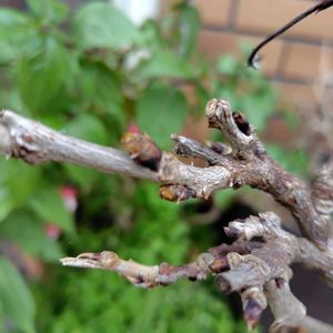 新芽 フジの新芽はちょっと黒い爪の悪魔の指っぽいな〜と観察してますが コレは他の芽に比べて丸くてふっくらさんのような気がする。 果たして!