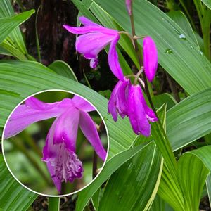 🌧️雨の中🌧️no.2 🏷️2のつく日は斑入りの日 🏷️✨水滴は魔法使い✨ に参加します! 雨の中!😃💕 葉っぱも花も雨☔💧の中👊😆🎵咲いています! 1️⃣シラン 斑入りシラン 2️⃣イエローバタフライ このこは2年ぐらいまえに暮れの終わり頃,HC で20円ぐらいでお迎えした物! 何と花まで咲くなんて思いもしなかったです! 今朝、気がつきました! 3️⃣ギボウシ 斑入りギボウシ 4️⃣斑入りベニカナメ 2年前に挿し木してまだそのまま植え替えていないベニカナメ🌿 5️⃣カシワバアジサイ 花芽が上がってきています! ヒュウガミズキ 花はわりと小さな花が2本ぐらいづつぶら下がっていたました!😃✌ 今は小さな実と綺麗なスジの通った葉っぱ🌿がでてきていました! 綺麗な葉っぱ🌿ですよね! 2026.4.19.📸pic!