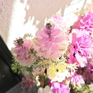 【1枚目】絶賛トウ立ち中の葉牡丹ですが、この切れ葉の高性葉牡丹フェザーホワイトに日が当たった時のピンク色がもう可愛くって可愛くって〜😍💕 ひな祭りの菱餅のような、ひなあられのような、三色団子のような、とにかく春真っ盛りな色合いです。 この葉牡丹だけで1鉢埋めたら、トウ立ち時にはラブリーな葉牡丹タワーになるだろうなー。来季やってみようかな😚 8月14日種まきから211日目/6ヶ月と30日目。 【2枚目】8号寄せ植えの全体像。まだギリギリ可愛いかな。 【3枚目】12号鉢の寄せ植えも伸び伸び〜ん。こちらは日当たり抜群なのでかなり緑化してきています。 白葉牡丹ではプラチナケール・ルシールバニラの緑化が激しいです。白つぐみやフレアホワイトはまだほとんどは緑化していないので、その差は歴然でした。 【4枚目】12号鉢の寄せ植えの横から。ふふふ、今年は横から見てもスカスカじゃないんだよー😚 なかなかうまく植えられました👍 【5枚目】矮性葉牡丹つぐみミックスの寄せ植えもトウ立ちしてきました。 やはり桃つぐみが一番で、紅つぐみがそれに続き、最後に白つぐみがトウ立ちしてきました。 あ、そろそろ緑化して桃と紅の区別が付かなくなりそうだから、採種のために判るようにしておかなくては!💪