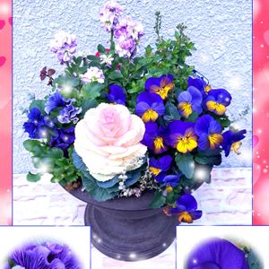 こんにちは~🌞💕 チーム・ブルーの花友さんのキリ番お祝いです💙💜 ㊗️Hi~さん2400pic ㊗️梨風さん2700pic ㊗️じゅんさん5100pic おめでとうございます😆💕✨🎊🍀💐💃🎉🎶 ①枚目…玄関先でモリモリになってきた寄せ植えで、お祝いさせて貰いますね~🥰✨️ ②枚目…24年から投稿してる「ミニセントポーリア💜」かおりんさんのリメ鉢が、お気に入りの様です💖 ③枚目…先月末に初めてお迎えした「雪割草」😍 キャシャですが…咲いてくれました~(*^^*)💕 🏷️青い花で春爛漫2026 🏷️春の青い花マニア 🏷️美しく青きドヨウ 🏷️エンジェルデー 🏷️かおりんのリメ鉢 🏷️コラージュして遊ぼ♡ 🏷️花咲く乙女たち♡ 🏷️愛の花♡ に参加させて貰いますね~🥰💙💜💚🩷🤍