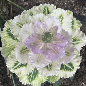 真上から見た 徒長しすぎた ハボタン ちょっといびつな レース編み🧶 コレはコレで趣きがある‼️