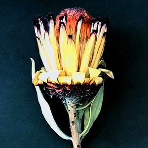明けまして おめでとうございます 久々の投稿でさっさと出来ません😅 一枚目 ドームで開催されていたテ ーブルウエアーの時に撮影した一枚お正月に相応しい色合いなので! 大きな花は存在感抜群ですがこの時は優しい感じ外側の硬い花弁のようなものは苞中央のふわふわ部分が本当の花の集合体 世界で最も美しい花の一つとされる ヤマモガシ科 原産地アフリカ 常緑低木 別名キングプロテア シュガーブッシュ 2枚目は渋さが光るロウヤガキ ロウヤガキは若い実は緑熟し始めは黄色→オレンジ 更に熟すと茶色→黒っぽい色に変化黒茶色の姿が名前の由来 老鴉(老いたカラス)ロウヤガキの象徴なのだそう この色に魅入られました。💓ぼちぼちですが本年も宜しくお願い致します。٩(^‿^)۶