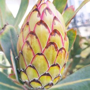キングプロテア リトルプリンスです。 調べると2年に1回咲くみたい。毎年咲かせるには剪定の技が必要みたいです。先ずは咲かせないと。