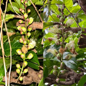 白い花を咲かせ、ユーカリのような香りの葉を持つ常緑低木の花木です。ハーブとして、マートルという名も有