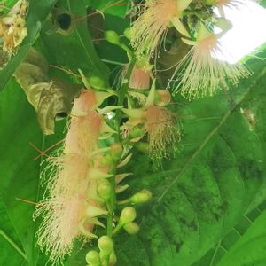 【下がり花】《サガリバナ科》 花言葉 「幸運が訪れる」「幸福が訪れる」 「夢」「一夜の栄華」 サガリバナの花は 総状花序(そうじょうかじょ) という花を軸に密集させて垂れ下がるように咲きます。 この様子からサガリバナと 名前がつけられました。 サガリバナは6〜8月に花を咲かせますが。夜に開花し始めて満開になり、翌朝にはポトッとそのまま地面に花が落ちてしうという不思議な花です。サガリバナの見た目は白やピンクで、花弁は4枚あります。また、開花をするとバニラのように甘く強い香りを放ちます。 過去pic 温室なので 11月に見られました