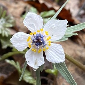 ☆セツブンソウ(節分草)☆ キンポウゲ科の多年草 花期:2〜4月 花弁のように見える白い萼片はφ2cm程。 黄色い部分が花弁で、青紫色部分が雄蕊。 一年で地上で見られる期間が2~3ヶ月しかないため「春の妖精」とも言われる。 2026.2.22 筑波実験植物園にて📷️