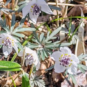 🩵セツブンソウ(節分草) 節分より後の2月20日ぐらいが見ごろです。白いところは萼で黄色いY字のところが花びらです。 ⚫︎キンポウゲ科 セツブンソウ属 ⚫︎原産 日本固有種 ⚫︎花期 2月下旬