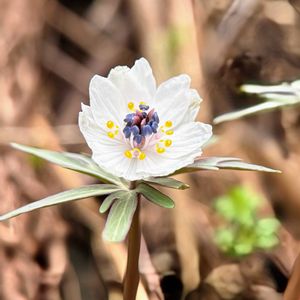 ☆セツブンソウ(節分草)☆ キンポウゲ科の多年草 花期:2〜4月 花弁のように見える白い萼片はφ2cm程。 黄色い部分が花弁で、青紫色部分が雄蕊。 一年で地上で見られる期間が2~3ヶ月しかないため「春の妖精」とも言われる。 2026.2.22 筑波実験植物園にて📷️