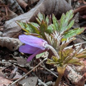 落ち葉から ぬくい陽に 小さな顔を出してました♡ 大雪や 春びより 極暖ヒートテックに ハイネック+ニット+フリースですが 着脱が忙しいわ〜 ʕ··;ʔ≡ʕ;··ʔ