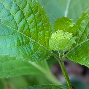 アプローチで… 1️⃣ 山紫陽花に蕾が出来ています 2️⃣ 庭の奥と同じように ここの稚児百合も下を向いています いつお顔を見せてくれるかな〜? 3️⃣4️⃣ 白雪芥子の一番花の脇についていた 蕾ちゃんも無事咲きました 羊歯から出て来たお花は 蜘蛛さんに気に入られたようです 5️⃣ 風車のような形の蔓日々草 紫の濃淡でおしゃれ〜 🏷️ニコイチさん お邪魔します♡