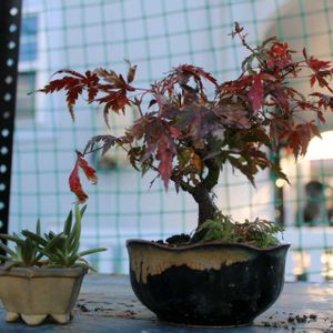ヤマモミジの 盆栽 BONSAI ムクロジ科カエデ属 この夏は1日4回 水やりをしていたのだそう 今でも1日2回 一鉢一鉢表面を触って 確認しながら🚿 ①ヤマモミジ 樹齢120年 ②ヤマモミジ 樹齢80年 大宮盆栽美術館