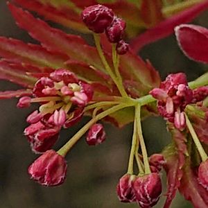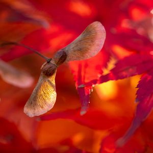近所の庭園。赤の火曜日。ヤマモミジのプロペラをマクロにて撮ってみました。2025.12.02.