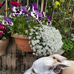 おはようございます♪ 散歩道のお花🦮🐾 ♡今日のお花♡ 💜パンジー💜 スミレ科スミレ属 🤍スイートアリッサム🤍 アブラナ科イワナズナ属