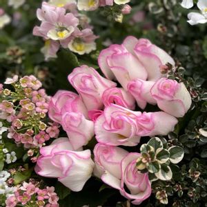 。:°ஐ*。:°ʚ♥︎ɞ*。寄せ植え。:°ஐ*。:°ʚ♥︎ɞ*。 バラ咲きジュリアンをメインに上両サイドにネメシアの色違いを配置。 真ん中上方にイベリスを使用、モフモフのアリッサムもいい感じです。 lovely感満載な寄せ植えになりました꒰ღ˘◡︎˘ற꒱✯︎*・♡