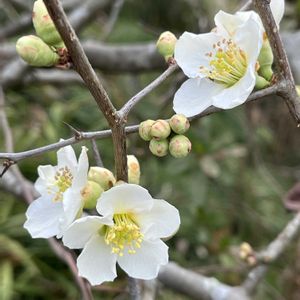 お散歩中に見たお花(樹木)たち… ボケ(木瓜) ロウバイ(蝋梅) キバナジンチョウゲ(黄花沈丁花) マンサク(万作) カロライナジャスミン ⚫︎⚪︎⚪︎⚪︎⚪︎ (含む過去pic)