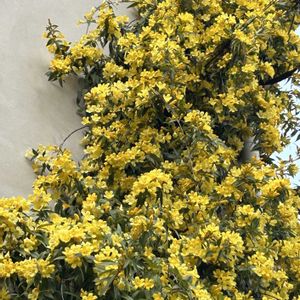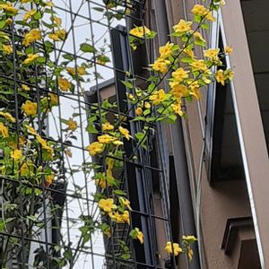 カロライナジャスミン 2階まで かけ上がり 満開です。