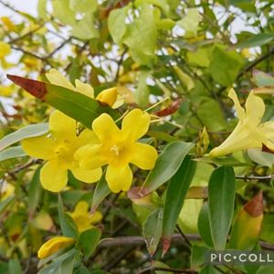今日のお花"ジャスミン" この前梅見🌸🌸に行った 山田池公園のアーチ状の こんもりしたカロライナジャスミン です♪🙋🏻♀️💞🎶 花の咲く頃又訪れたいです🎶🤗💞💞🌳🌿