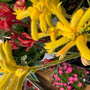 カンガルーポーの花を初めて見ました‼️ 何だかドラゴン🐉の🐲頭みたい… 私だけかしら🤭 (ゆりの里公園の花販売所にて)