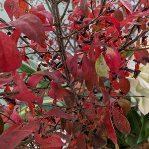 紅葉のニシキギに赤い小さい実がたくさんついてました。 初めて見ました😃 とても可愛いです。 濃い赤色のカンガルーポーに黄緑色の…これは花?何か 分かりませんが。 これも初めて!
