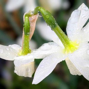 デッキのお花達も 雨に濡れてきれいです! 1️⃣2️⃣ 「香る純白水仙」… 3️⃣ 鉢へのお客様… タンポポ?と思っていましたが 写真を上げようとしたら 急に自信が無くなりました お花が咲いたら誰か判りますね💦 4️⃣ 小鉢の小手毬… 葉の縁が雨粒で飾られました 5️⃣ 雨前にデッキの鉢植えを避難させていると ふとデッキ下西側の木の下に 黒百合の鉢植えがあるのに気付きました あっそうだったと慌てて上に上げました 昨年お花が終わってから暑さを避けて 下ろしたのでした 一昨昨年は1株 昨年は2株 そして今年は何と10株以上… こんなに旺盛に芽吹いてくれて 嬉しい悲鳴ですが さてこれをどうしましょう?! 植え替えてあげないといけないでしょうが 寒さには強くて暑さには弱い黒百合さん 何箇所か考えて地植えにもしてやらないと いけませんね