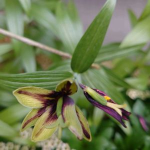 クロユリ(黒百合) ユリ科 バイモ属 蕾がなかなか黒くならないなと様子をみていたところ、雄しべの無い雌花が咲きました👀 花色も大丈夫かこれ~💦といった色具合です 鱗茎が小さいと葉だけになり、少し大きくなると雌しべの無い雄花がつくことがあるようです(経験済み😊) 鱗茎が大きくなれば両性花をつけます 雌花の場合も鱗茎の大きさによるのかな~🙄 画像1枚目は雌花1個と両性花1個 画像2、3枚目は同じ個体で雌花2個 画像4枚目は雌しべの無い雄花です 花色は両性花と変わらず 開花中に撮ればよかったのですが、この日まで気にしたことがなかったので…🥹 ちなみに画像5枚目は花が4個ついており、現在両性花が2個開花中です🙂↕️ (→結果、全て両性花でしたw)