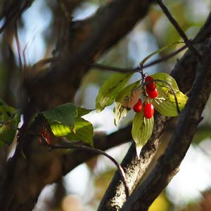 久しぶりに訪れた公園で 艶々のサンシュユの実
