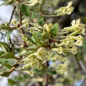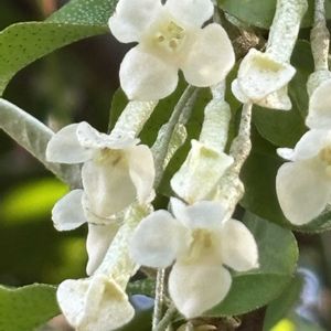 グミの花 上の方の花が下から撮れたので嬉しい☺️ 見事に下を向いた花がぶら下がっています。