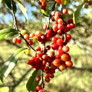 秋の実り🍂 野グミ🍒色付いて来ました😊 一口含んですぐ出した🤣🤣 やっぱりこれは野鳥🐧の物だね🤣