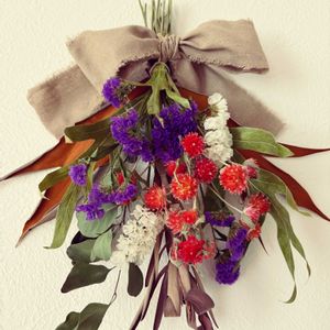 家にある素材を使って、ちょっと小さめのスワッグを作りました💐